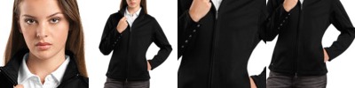 This rich piece is ideal indoors and out. Lightweight, yet warm, it has a soft sweater-knit face with a fleece interior. A cadet collar, reverse coil zipper and zippered pockets enhance the appeal. Binding on cuffs and hem. Made of 12-ounce, 100% polyester sweater fleece.